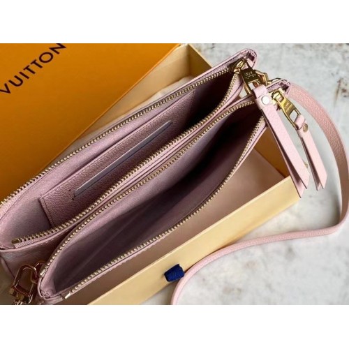 For the Mother's Day capsule collection, the Double Zip Pochette comes in soft Monogram Empreinte leather with the embossed Monogram pattern highlighted in white. This versatile pouch features two secure zipped pockets with a flat pocket in between. It can be carried in the hand or on the shoulder thanks to its removable strap.