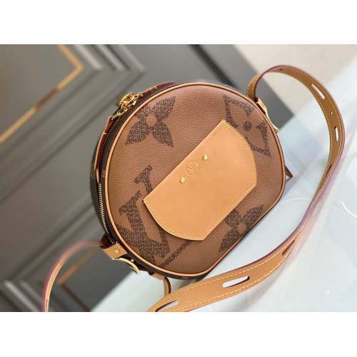 Fashioned from Monogram Reverse canvas, the Mini Boîte Chapeau handbag delights with its iconic shap..