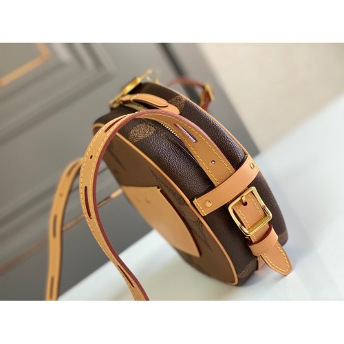 Crafted from supple Monogram canvas, this fashionable Boite Chapeau Souple bag is printed with the season’s striking oversized motif, in both classic and reverse versions. Lightweight and versatile, it can be carried by the iconic Toron handle, slung over the shoulder or worn cross-body. An adorable accessory, sized just right to fit the essentials.