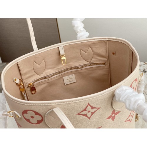 Elegant in bicolor Monogram Empreinte leather, this Neverfull MM tote will lend a springlike touch t..