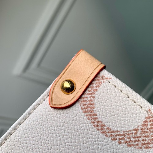 From the Cruise 24 collection comes this OnTheGo MM, a capacious tote crafted from new Monogram Dune canvas. The sand-inspired colorway gives a modern, effortless air to this versatile OnTheGo, which features two top handles in contrasting black leather and twin shoulder straps made from the Maison’s heritage natural cowhide. Golden hardware adds a gleaming flourish to the piece.