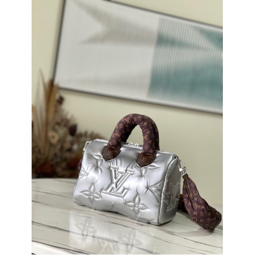 Louis Vuitton Speedy Bandouliere 25 Bag In Silver Recycled Nylon M20973