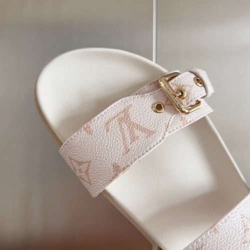 This edition of the Bom Dia flat comfort mule comes in Monogram Dune canvas, which was seen on the runway at Louis Vuitton's Cruise 2024 show. It complements the relaxed design of this sandal, with its two adjustable straps, anatomic insole and lightweight rubber outsole. The front strap is fastened with an engraved, gold-tone buckle.