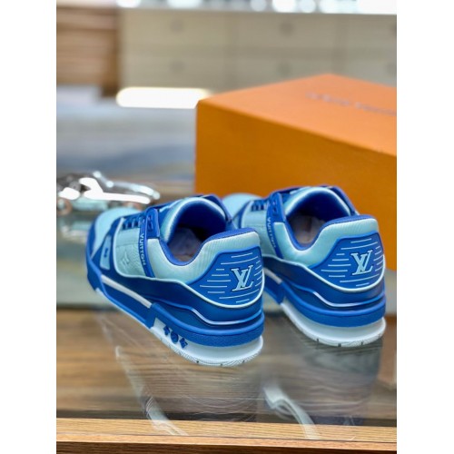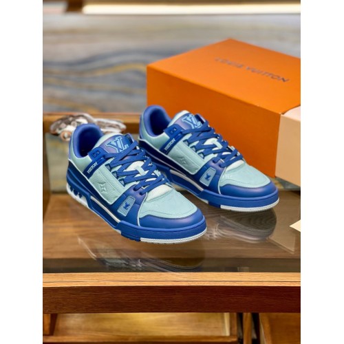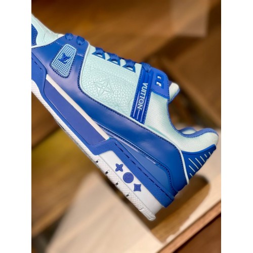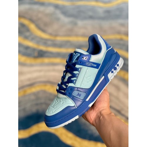 Louis Vuitton Men's LV Trainer Sneakers In Blue Denim with Leather