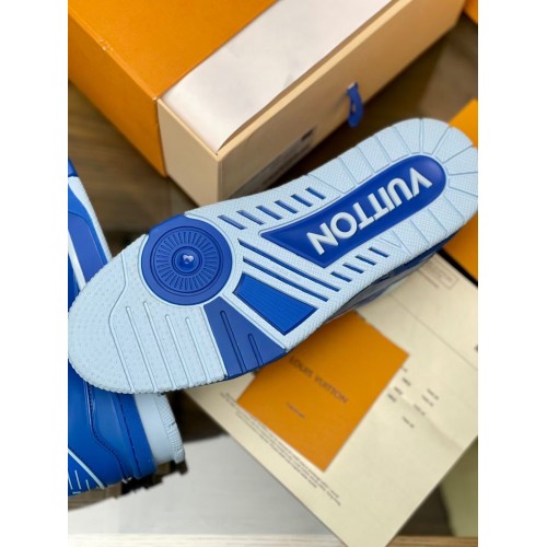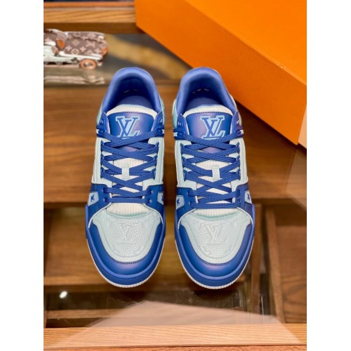 Louis Vuitton Men's LV Trainer Sneakers In Blue Leather