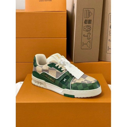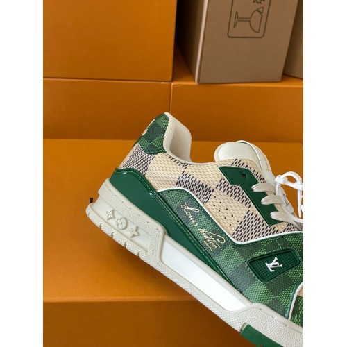 Louis Vuitton Men's LV Trainer Sneakers in Green Damier Canvas