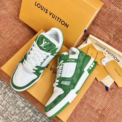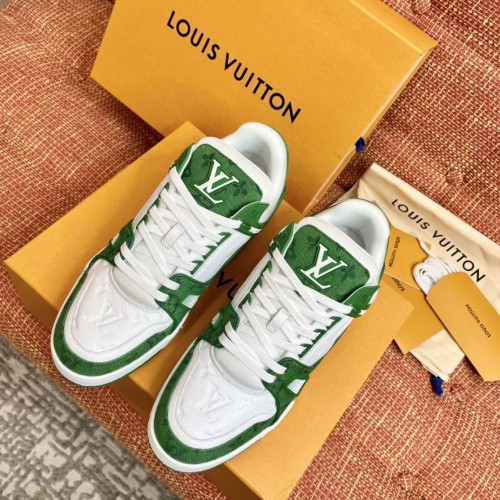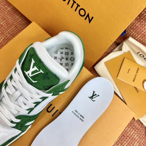 Louis Vuitton Men's LV Trainer Sneakers In Green Denim with Leather