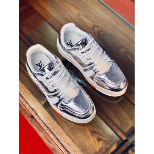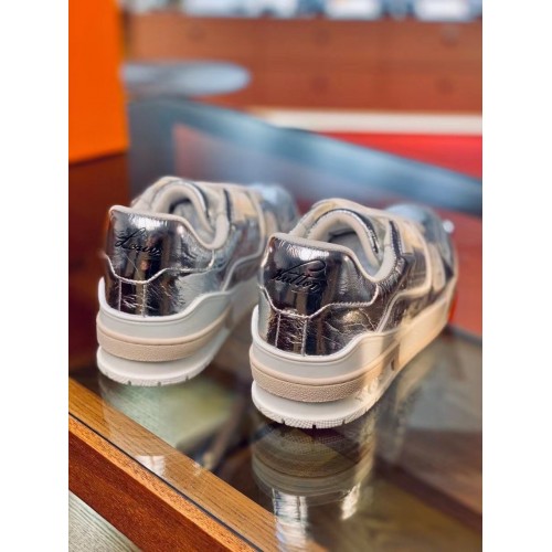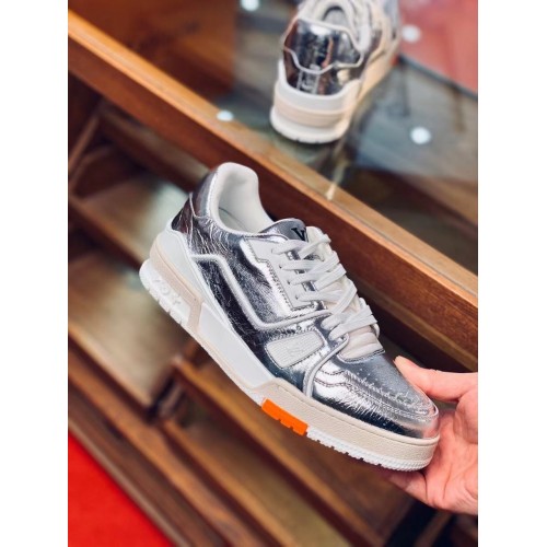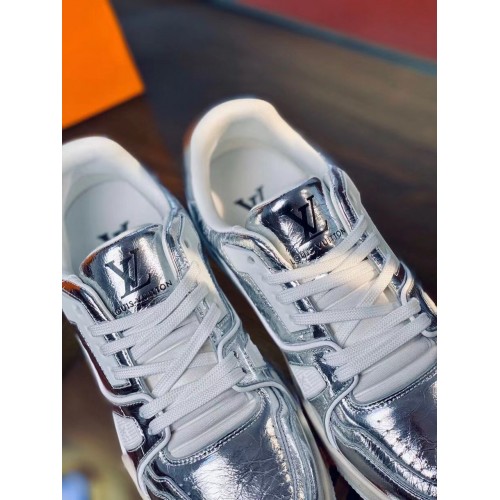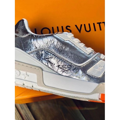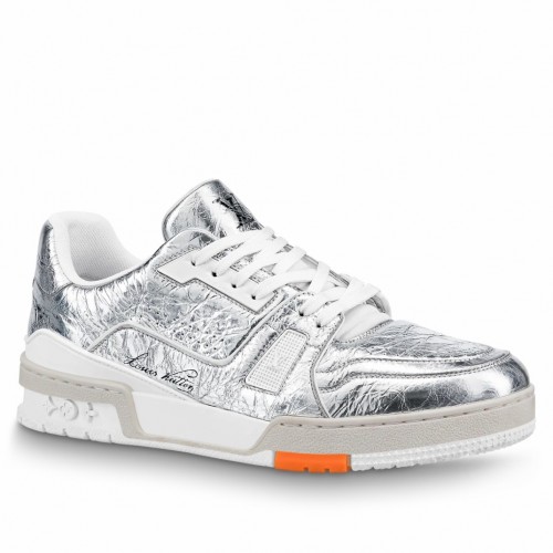For Louis Vuitton's Fall-Winter 2021 men's show, the LV Trainer sneaker was revisited in metallic si..