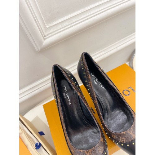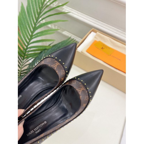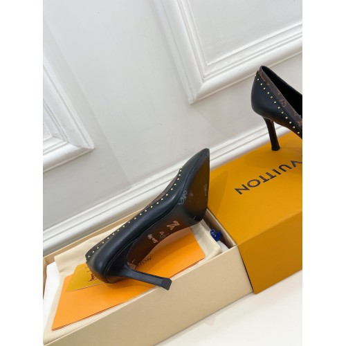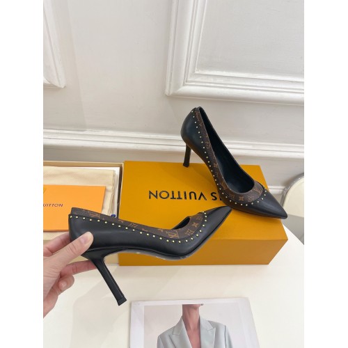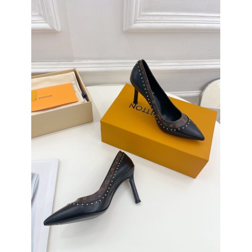 Louis Vuitton Signature Pumps in Black Leather with Monogram Canvas