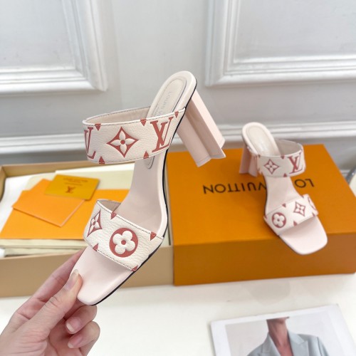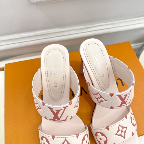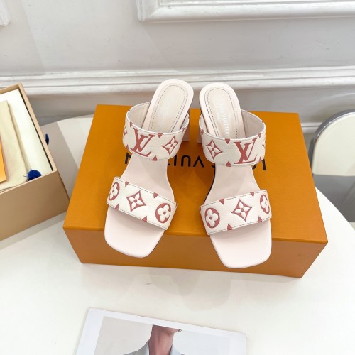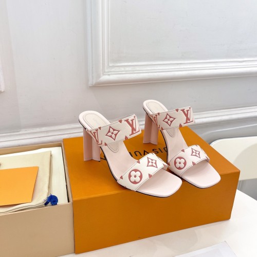 The Silhouette Mules are revisited this season in supple, grained calf leather, whose two-tone palette highlights the embossed Monogram pattern. This model features two wide straps to support the foot and a steady block heel in the shape of a Monogram Flower. The heel is covered with tonal leather for a refined look.