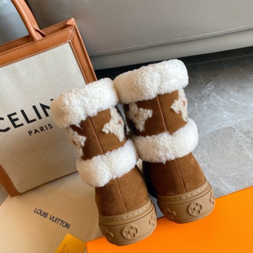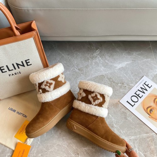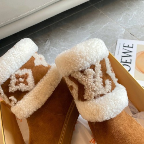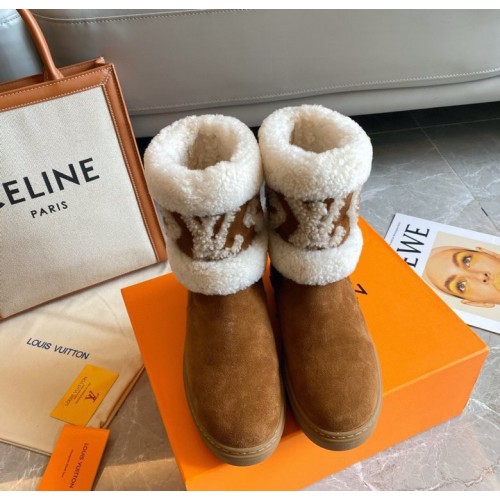 Louis Vuitton Snowdrop Flat Ankle Boots In Brown Suede with Shearling