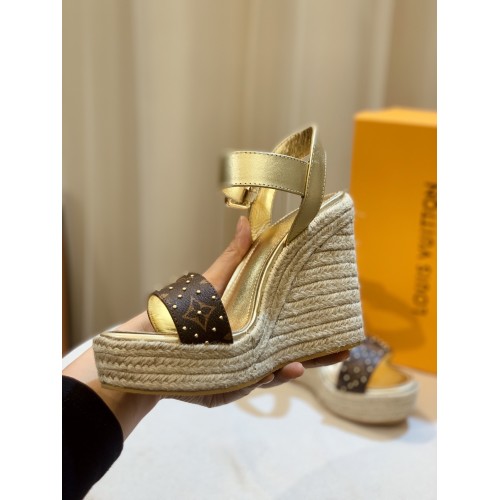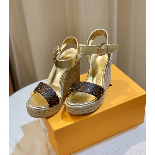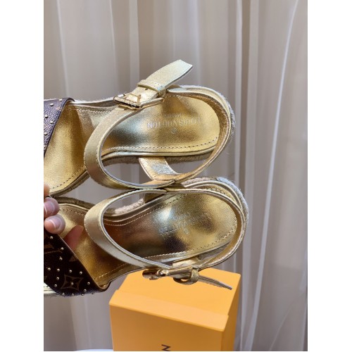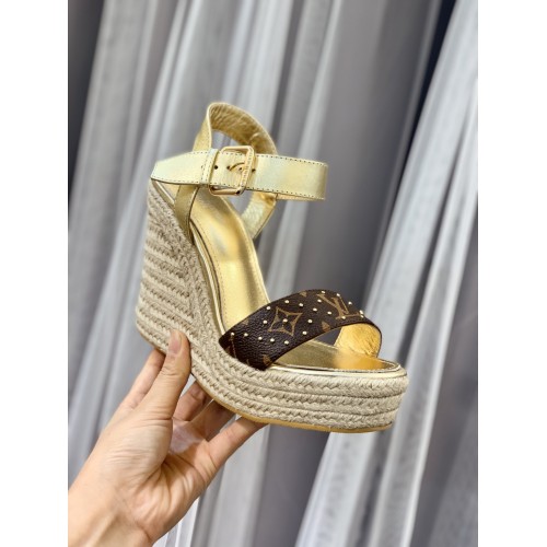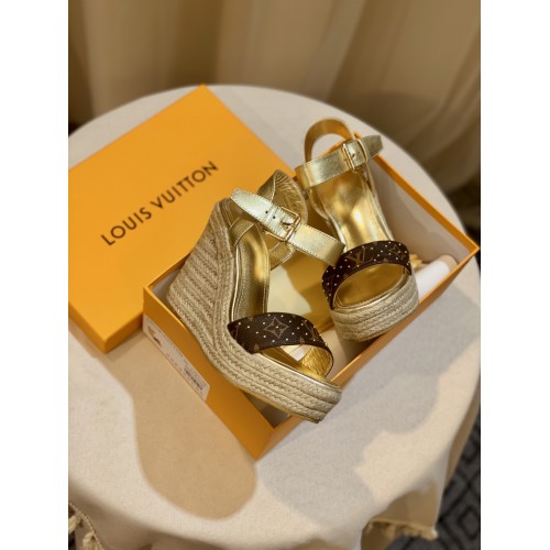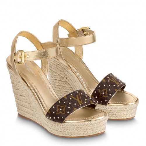 Louis Vuitton Starboard Wedge Sandals in Lambskin and Monogram Canvas