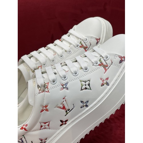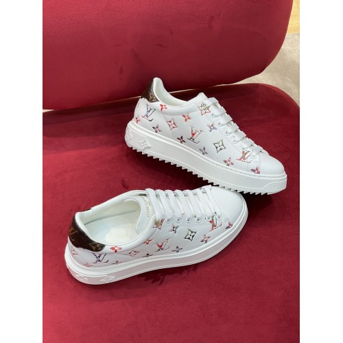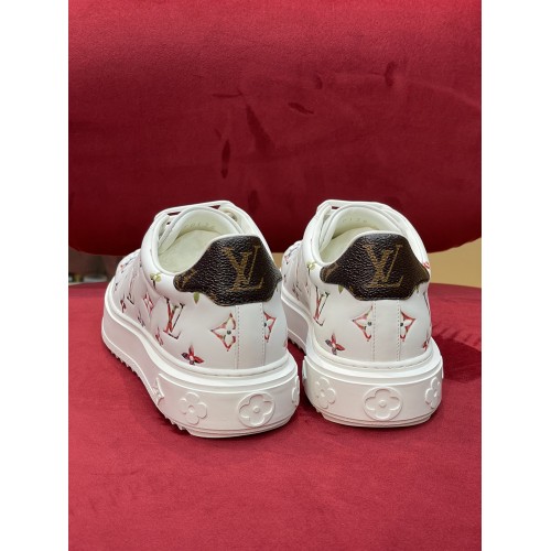 This seasonal edition of the Time Out sneaker comes in extremely supple lamb leather, which is embossed with a floral version of the Monogram pattern inspired by the leather goods. Instantly identifiable for its elevated rubber outsole, this emblematic model is also notable for its rich details, including engraved, gold-tone eyelets and Monogram-canvas trim.