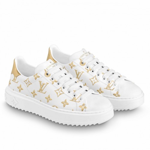 Louis Vuitton White Time Out Sneakers with Gold Signature
