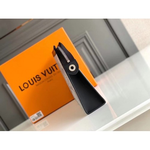 The Pochette Voyage emanates contemporary chic with Damier Graphite 3D canvas, an original variation on Louis Vuitton’s iconic checkerboard motif in upbeat Antarctica silver. This innovative accessory is ideal as a supplement to a suitcase or for everyday use with its large capacity and six card slots. An elegant way to carry travel documents and other necessities.