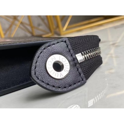 Compact, versatile and totally on-trend, this Pochette Voyage MM in Damier Graphite coated canvas ca..
