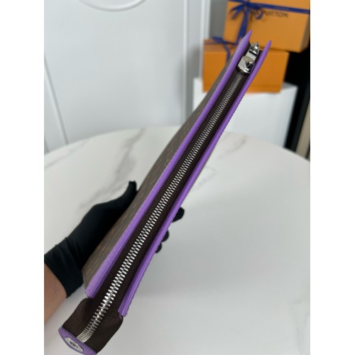 This Pochette Voyage pouch is made from Monogram Macassar coated canvas with cowhide leather trim in a bright colorway. The interior is lined with matching-colored leather and features six card slots as well as an inside flat pocket. The pouch closes with a silver-color zipper.