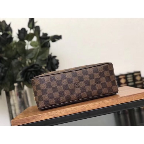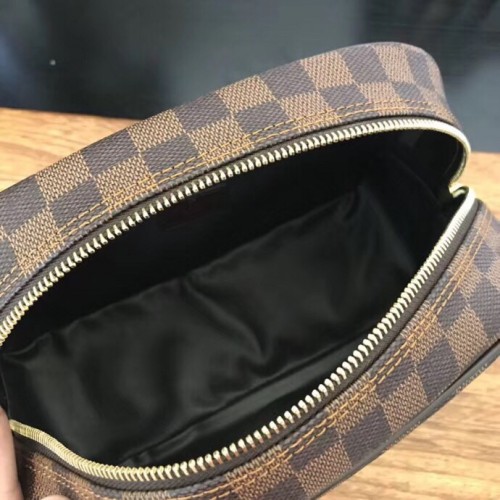 This Damier canvas toiletry bag features an inside patch pocket and a washable lining. Softly rounded, it easily slips into a travel bag.