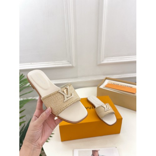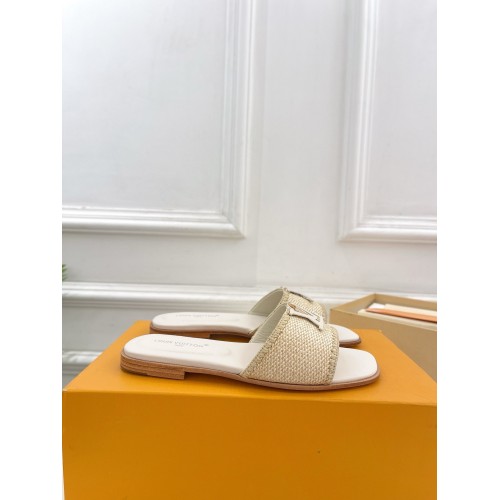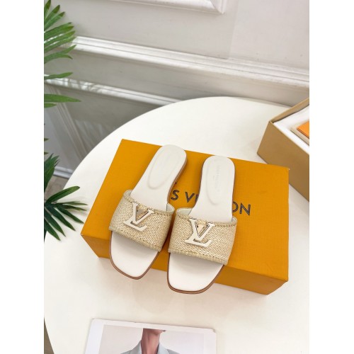 Louis Vuitton LV Capri Flat Slides in Natural Raffia