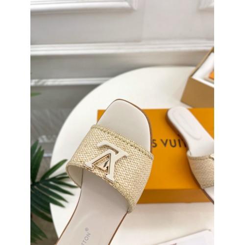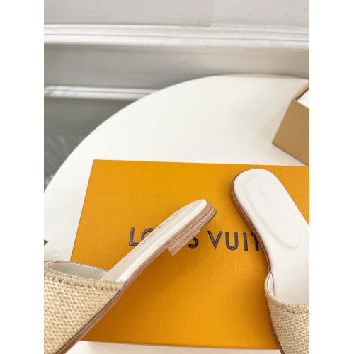 Louis Vuitton LV Capri Flat Slides in Beige Raffia