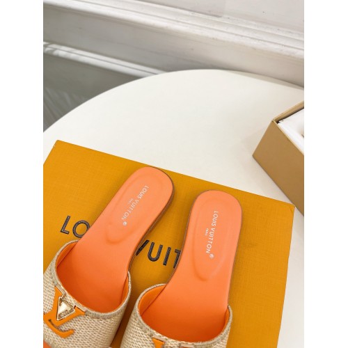 Louis Vuitton LV Capri Flat Slides in Natural Raffia