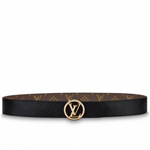 This reversible belt offers a choice between iconic Epi leather and Monogram canvas for a more casual look. The new LV Circle buckle adds an extra signature touch.