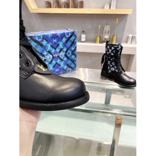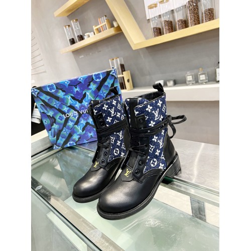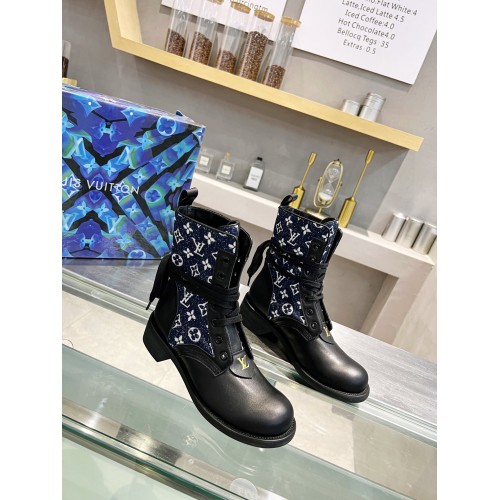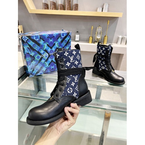 Louis Vuitton Metropolis Flat Ranger Boots In Monogram Denim