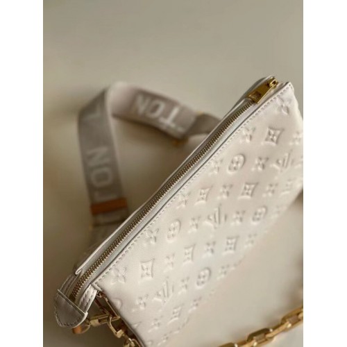 One of the stars of the Spring-Summer 2021 show, the Coussin PM handbag is made from Monogram-emboss..