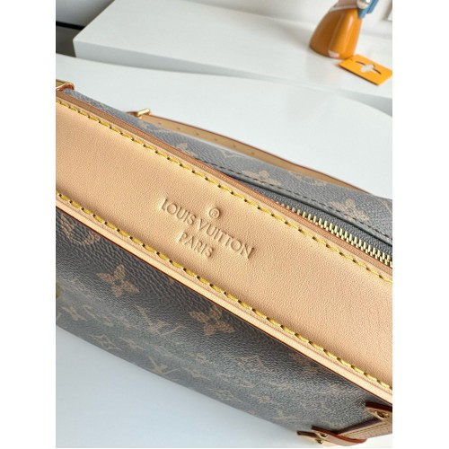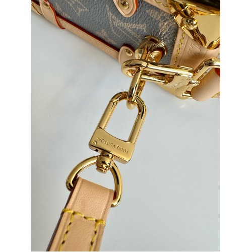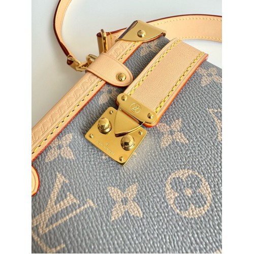 With its elegant Parisian color palette and gold-toned details, the Side Trunk MM perfectly complements this season’s RTW collection. It is inspired by the colors originally used in the House's vintage trunks and is crafted from signature Monogram canvas with natural cowhide trims. Both the top handle and strap are removable, providing plenty of carry options.