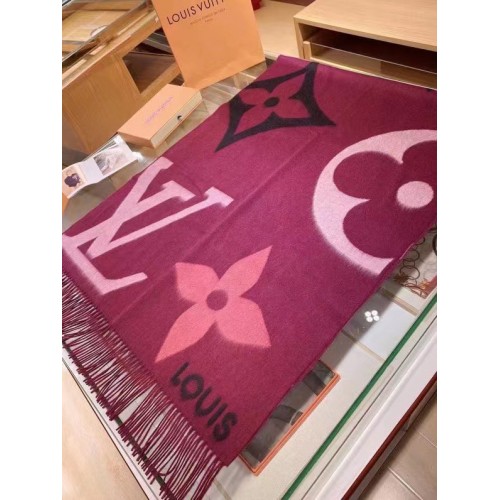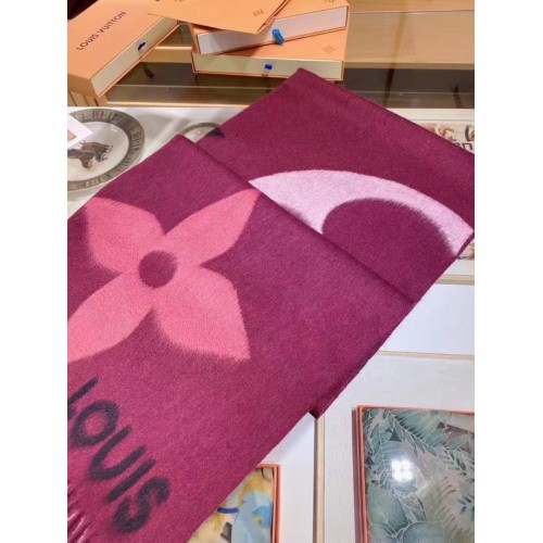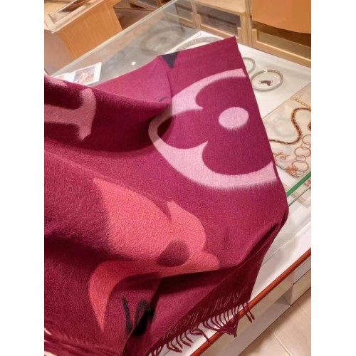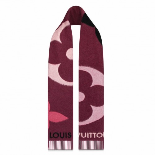 An oversize Monogram pattern in contrasting colors emblazons the Ultimate scarf for a cutting-edge l..