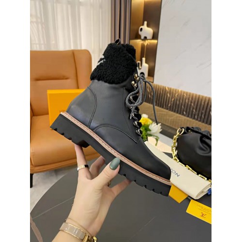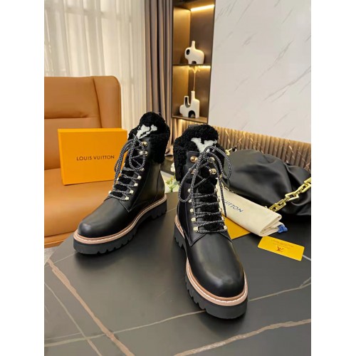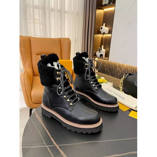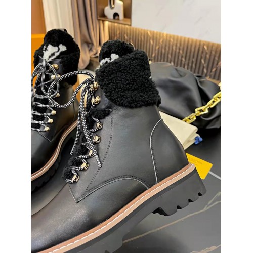 Louis Vuitton Black Territory Flat Ranger Boots with Shearling