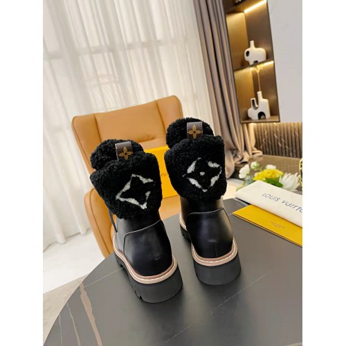 Louis Vuitton Beaubourg Ankle Boots in Black Leather with Shearling