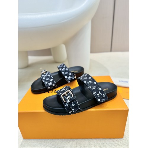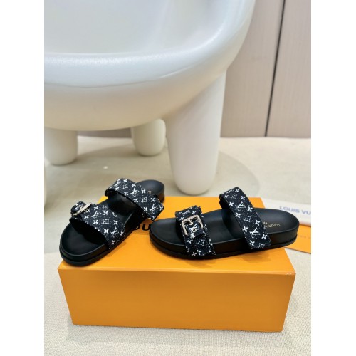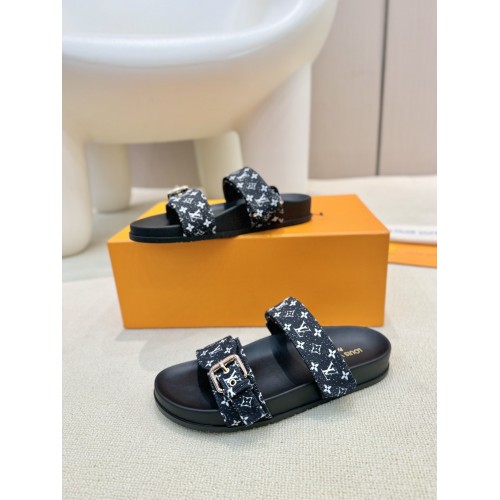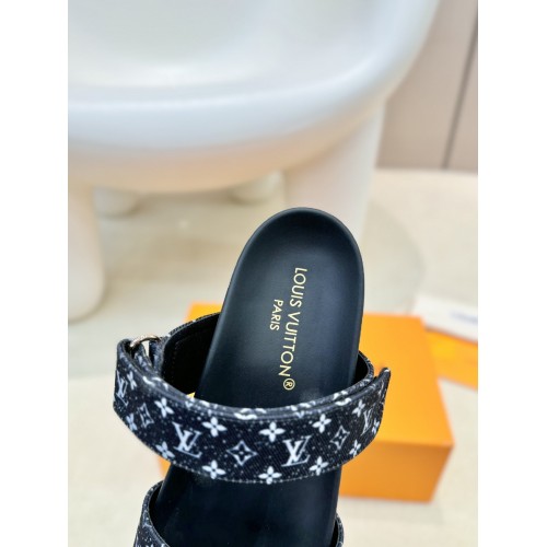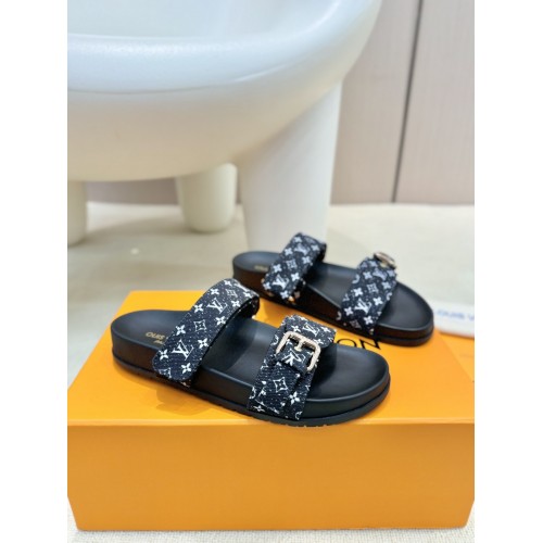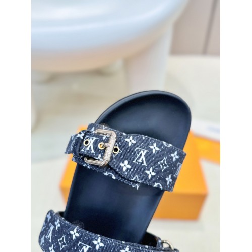 Louis Vuitton Bom Dia Comfort Mules in Blue Monogram Denim