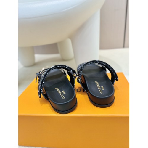 The Bom Dia flat comfort mule combines fashion and function in Louis Vuitton's signature Monogram ca..