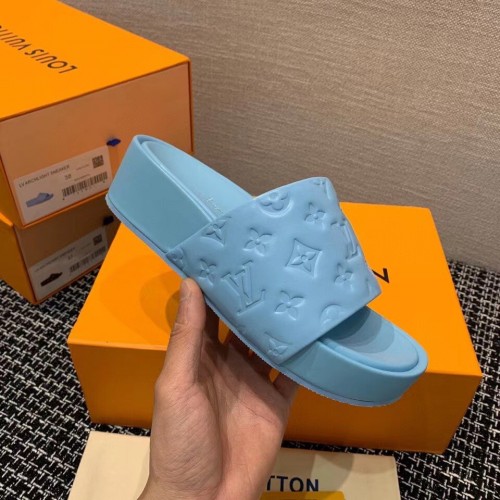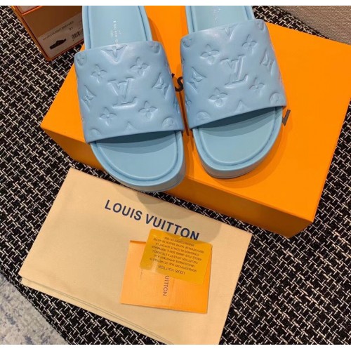 Louis Vuitton Jumbo Flatform Mules In Blue Monogram Lambskin