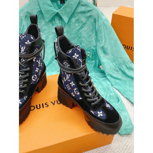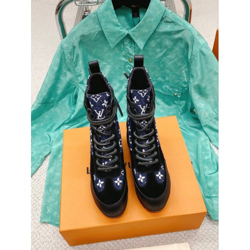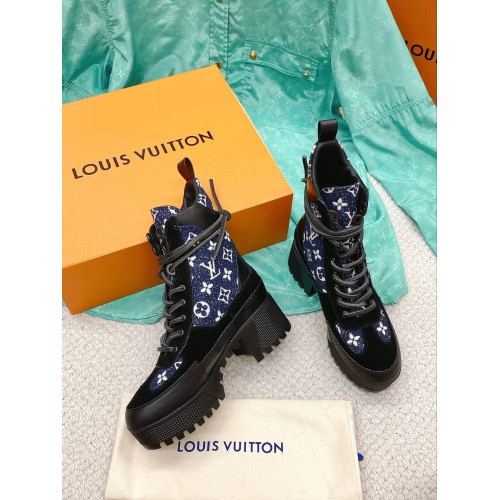 Louis Vuitton Laureate Platform Desert Boots In Monogram Denim