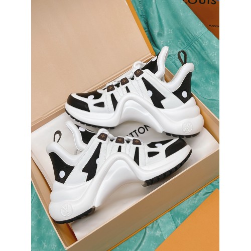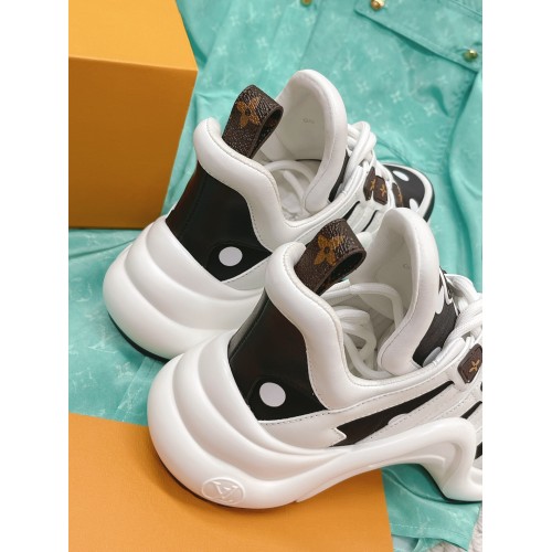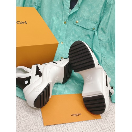 The LV Archlight sneaker is revisited in a combination of calf leather and textile printed with the ..