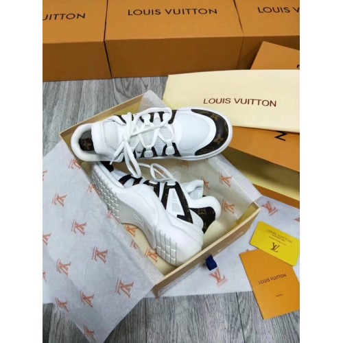 The LV Archlight sneaker is revisited in a combination of calf leather and textile printed with the ..
