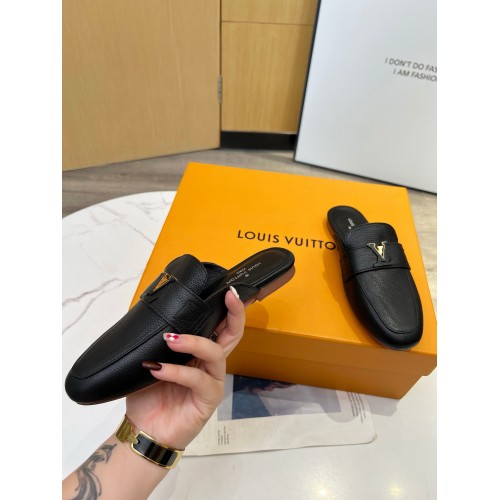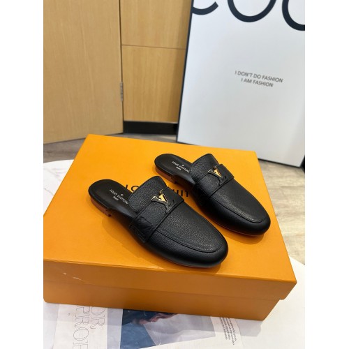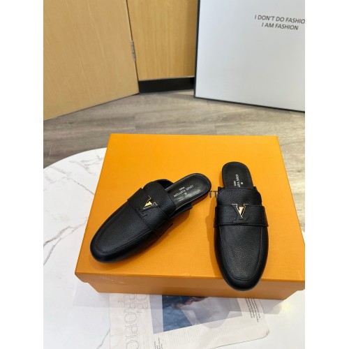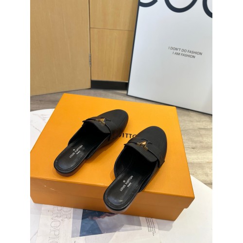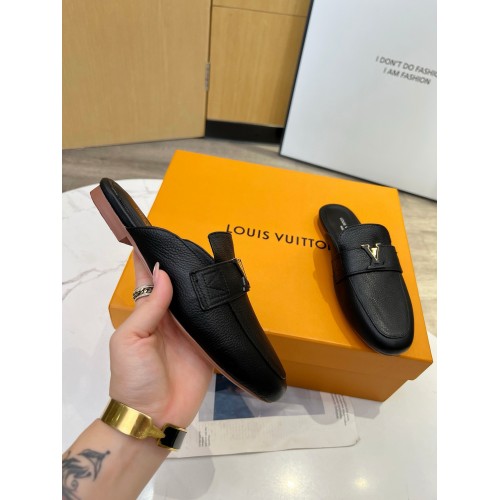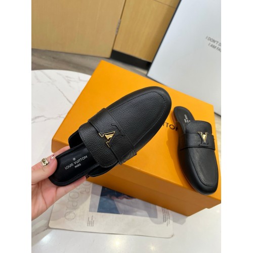 Louis Vuitton LV Capri Open Back Loafers in Black Leather