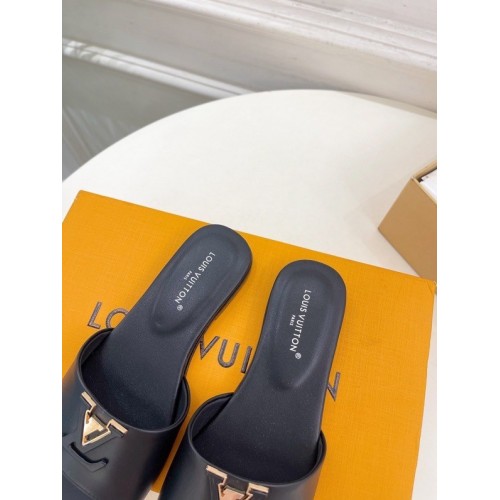 Louis Vuitton LV Capri Slides in Black Calfskin