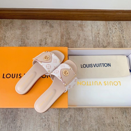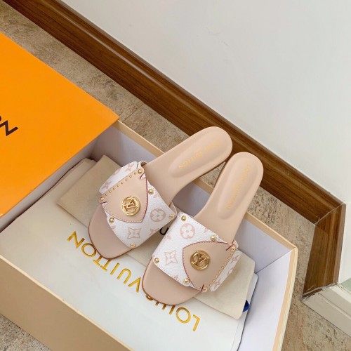 The LV Frame flat mule is a casual-chic style which pairs Monogram and Monogram Reverse canvas. It i..