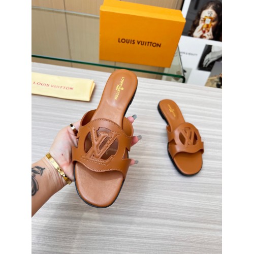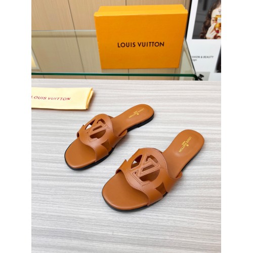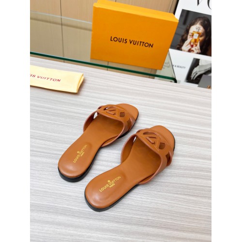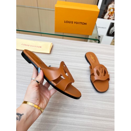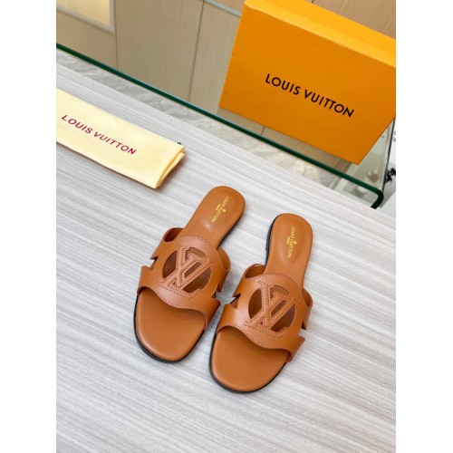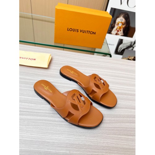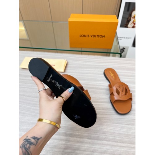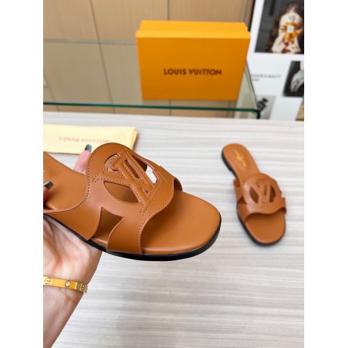 Louis Vuitton LV Isola Flat Slides In Brown Calfskin