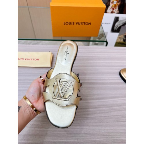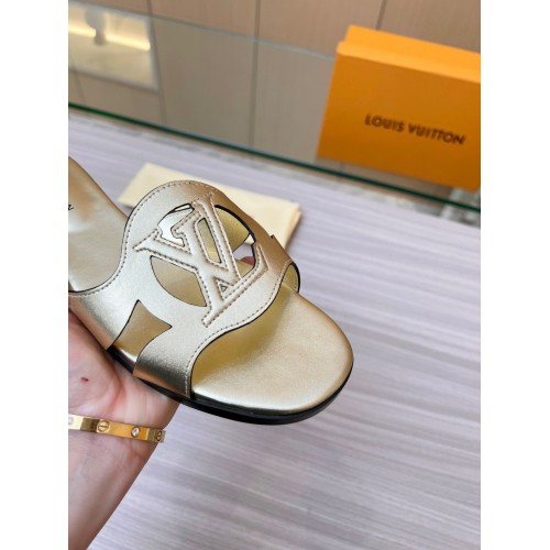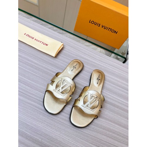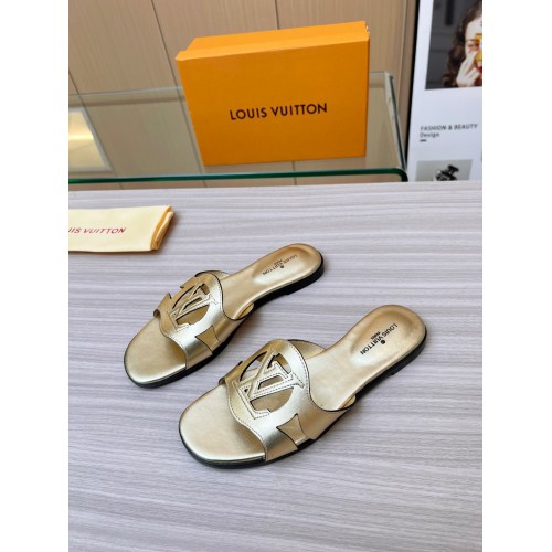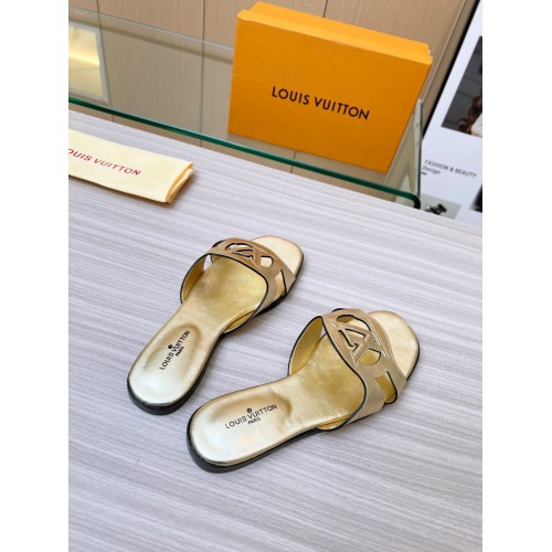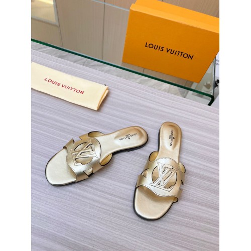 Louis Vuitton LV Isola Flat Slides In Gold Metallic Leather