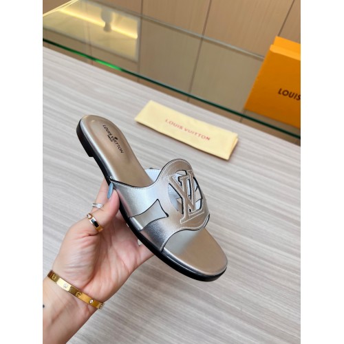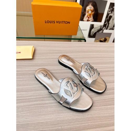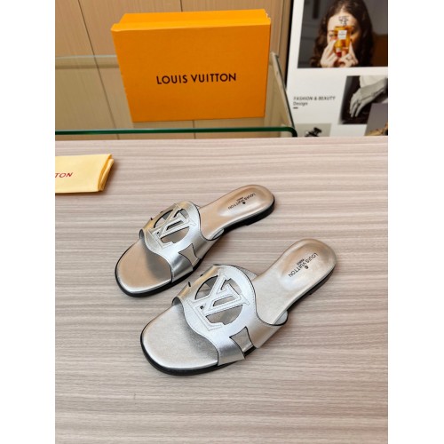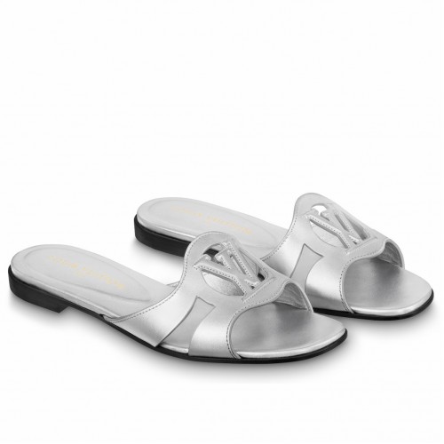 Louis Vuitton LV Isola Flat Slides In Silver Metallic Leather