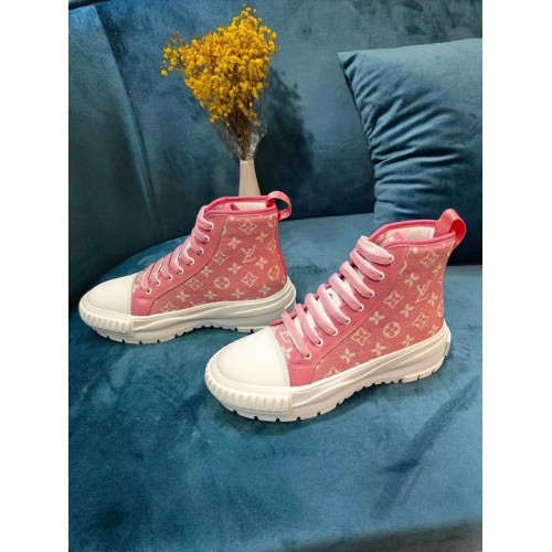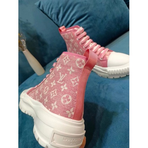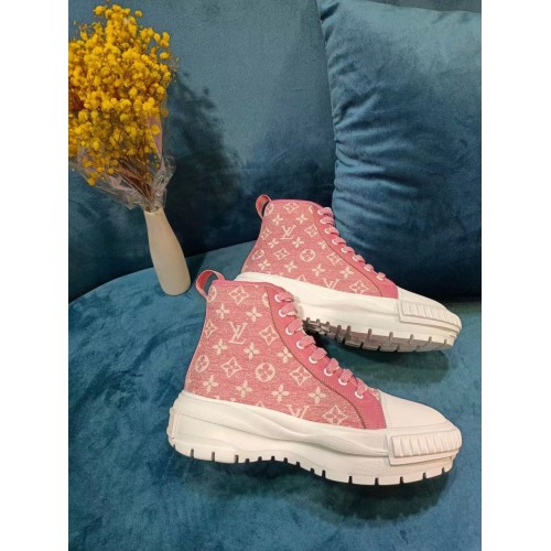 Louis Vuitton LV Squad Sneaker Boots In Pink Monogram Denim