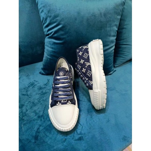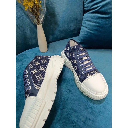 The LV Squad sneaker looks fresh and summery in Monogram denim. This model is characterized by its c..