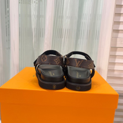 This version of the LV Sunset flat comfort sandal comes in extremely soft lambskin. This easy-to-wea..