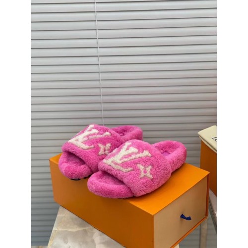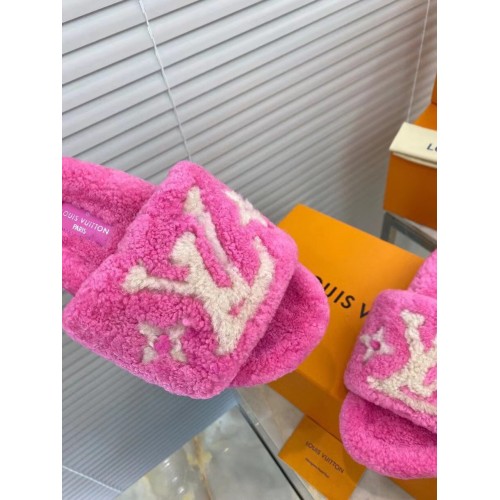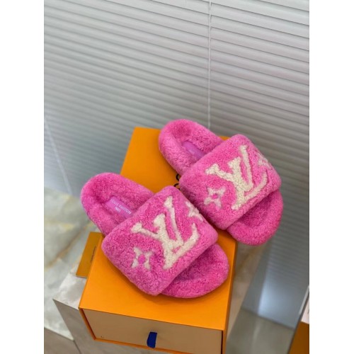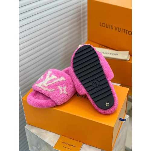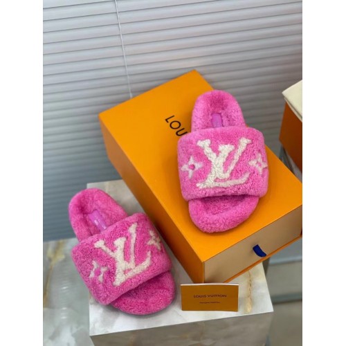 Louis Vuitton Paseo Flat Comfort Mules In Pink Shearling