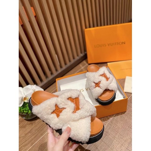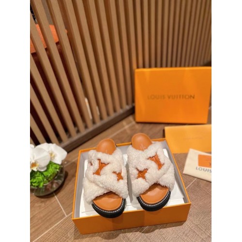 Louis Vuitton Paseo Flat Comfort Mules In Beige Shearling