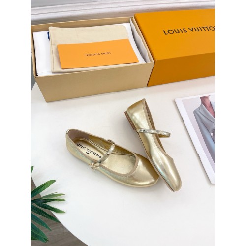 Louis Vuitton Romy Flat Ballerinas in Gold Metallic Lambskin